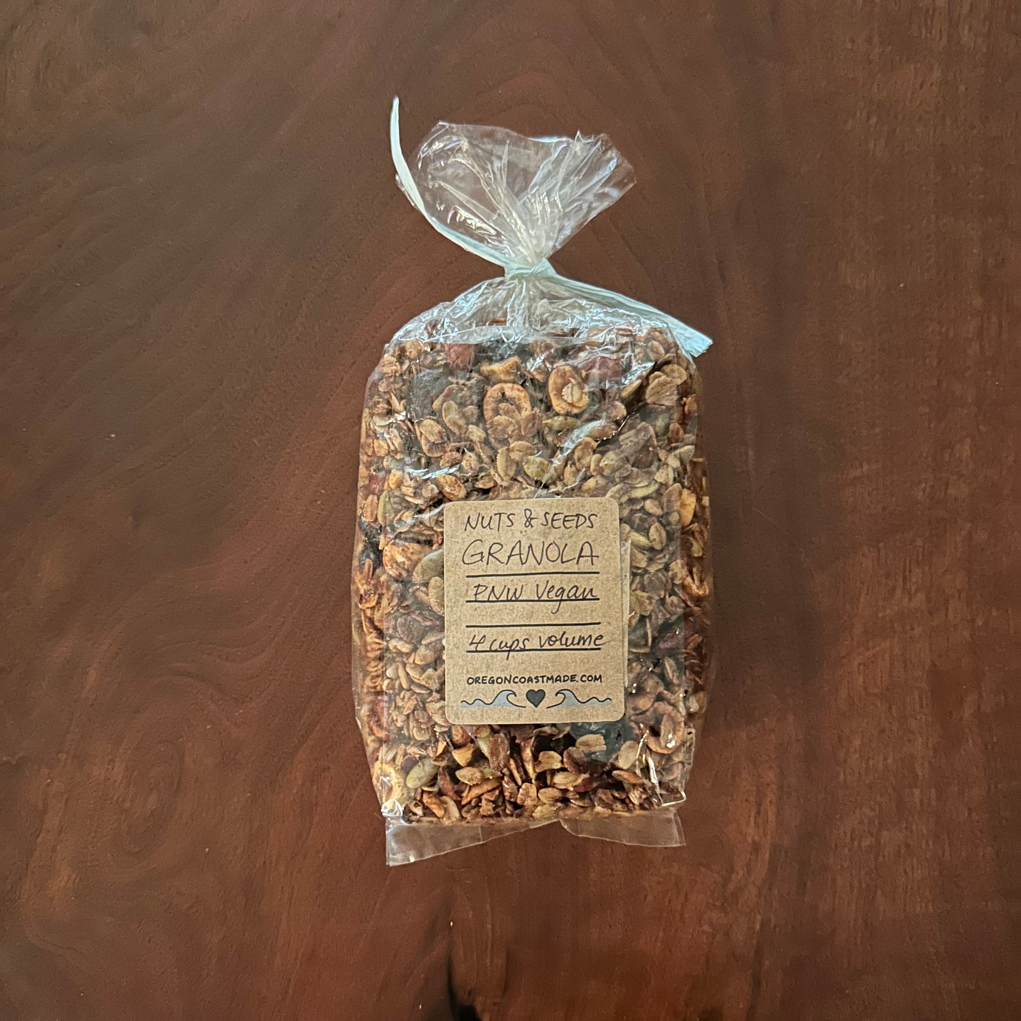 Many granolas are mostly oats with some add-ins for flavoring. We love our granola to be almost closer to trail mix with lots of nuts, seeds, and fruit. Each bite is different and it's yummy enough to be eaten as a snack.