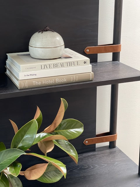 Nous avons fabriqué des sangles d'étagère décoratives en cuir selon les spécifications d'un organisateur de maison pour un ajustement parfait.